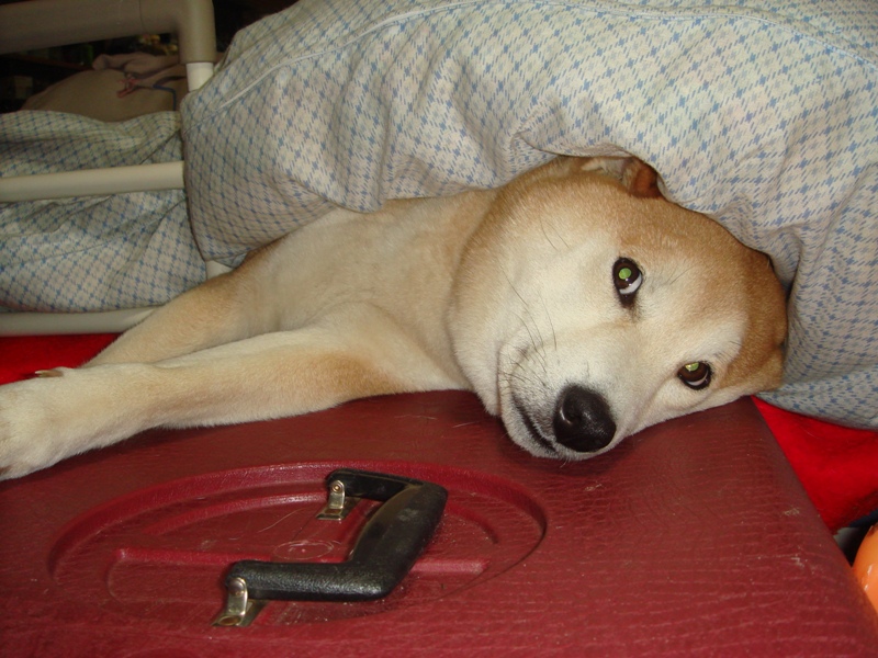 ベッドのお布団に潜り込み・・・温まり過ぎて・・・顔と前足を・・・ハウスの上に・・・投げ出している・・・お得意のポーズです・・・”何か用でも?”・・・とでも言いたそうな?・・・眼つきが可愛いです・・・(ハイ!親バカです。)・・・まだまだ寒い日が続きそうです