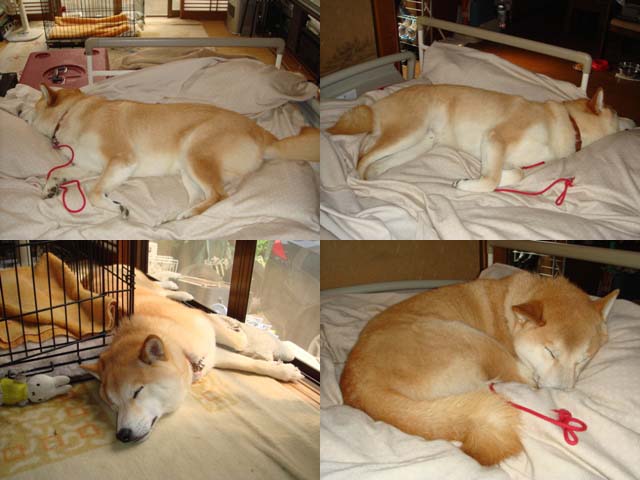 カバーを掛けてあるベッドの上・・・サッシの側・・・特に・・・リラックスするとき・・・お気に入りの場所みたいです!・・・ゆっくりしたいときは「ハウス」&「おうち」に入ります!