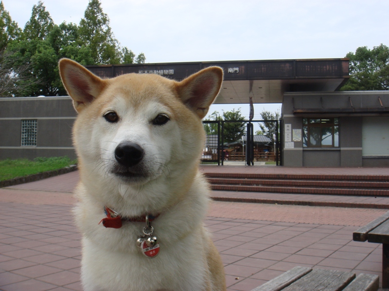 私を・・・ジーット見つめて・・・「ワン」・・・ウ○チと尋ねると・・・「ワン」と返事・・・で、今日は早めの散歩に出かけました。・・・3時過ぎ・・・熊本市動植物園の南門・・・開いています。(永年、閉門でしたが、10月1日から開門中)・・・一時の外出は・・・小さな子供連れが多いようです!・・・今日は涼しかったので・・・久しぶりに・・・1時間ほど歩きました。・・・(普通は35~45分)・・・こうたろうも満足したのでしょう?