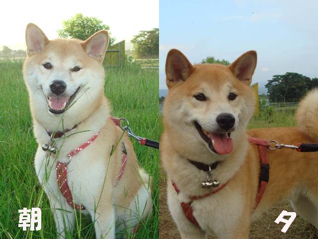 雑草が随分・・・伸びていましたが・・・夕方の散歩のときは・・・一部分刈り取ってありました。・・・緑が・・・茶色に変わっています!・・・でも、あいも変わらず・・・幸太郎の笑顔は素敵です!・・・(親馬鹿バカです。)