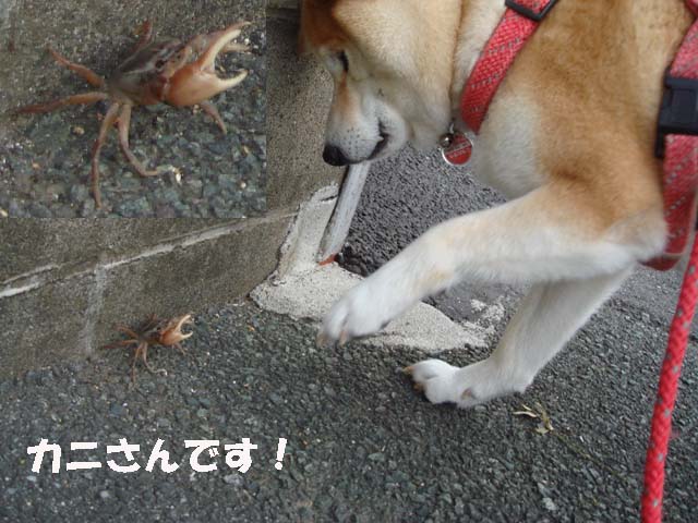 水神さんから・・・遊びに来たのか?・・・カニさんがいました!・・・幸太郎も始めて見たので・・・ビクビクしながら・・・喜んで?・・・遊ばされていました!・・・楽しそうでした!・・・しばらくしてから・・・おばあちゃんが・・・カニさんを水神さんに・・・返してあげました!
