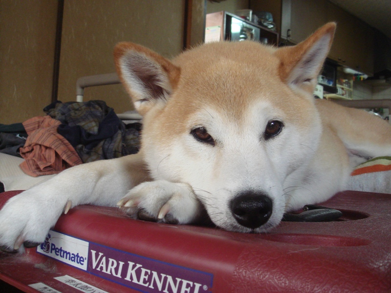 お昼寝のあと・・・ボーっとしている・・・こうたろうです。・・・この後・・・散歩にいきましたが・・・元気一杯・・・(熊本市動植物園)南門の所では・・・まだ?お家に帰らない!・・・座り込み・・・仕方なく・・・私も休憩しました。
