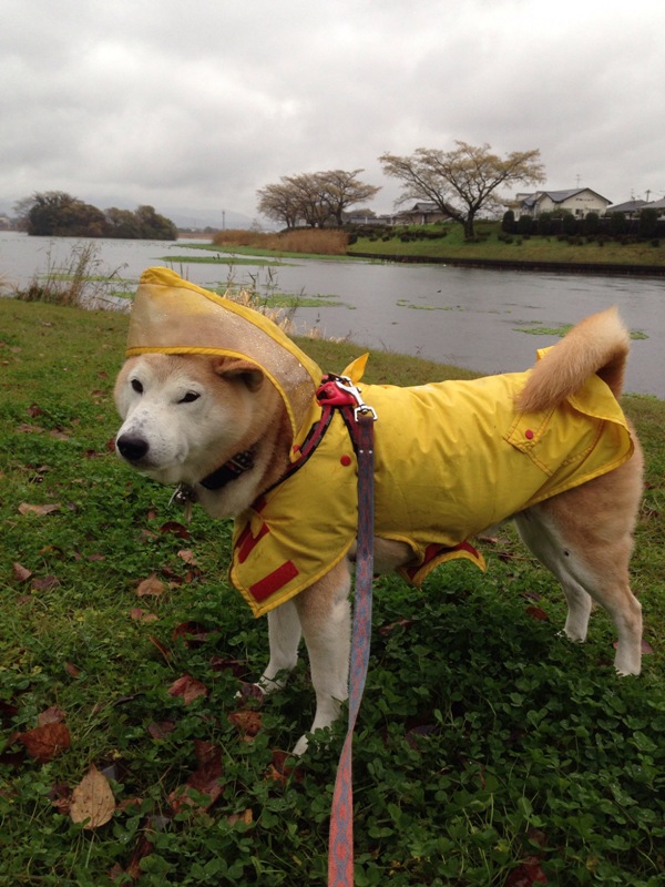 雨が止まないのでemoji本当に久しぶりにコートを着せて出かけましたemoji