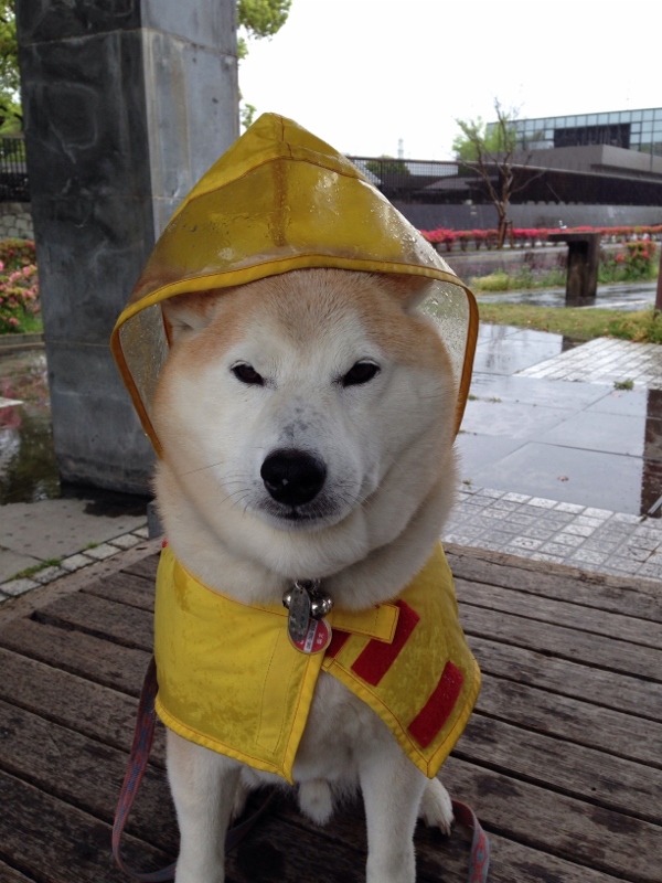 こうたろうお気に入りのレインコートを着せて遅めの散歩に出かけましたemoji
