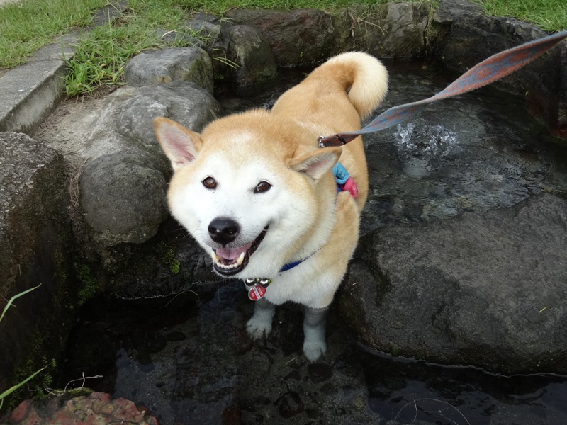 遅めの散歩でしたが、南門側の小さな湧水池でお水ジャブジャブゴクゴク、とても気持ち良さそうですemoji