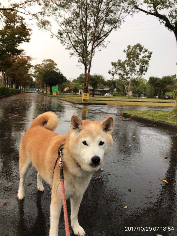 出かけるときは霧雨・・・コートを着せないで出かけましたemoji