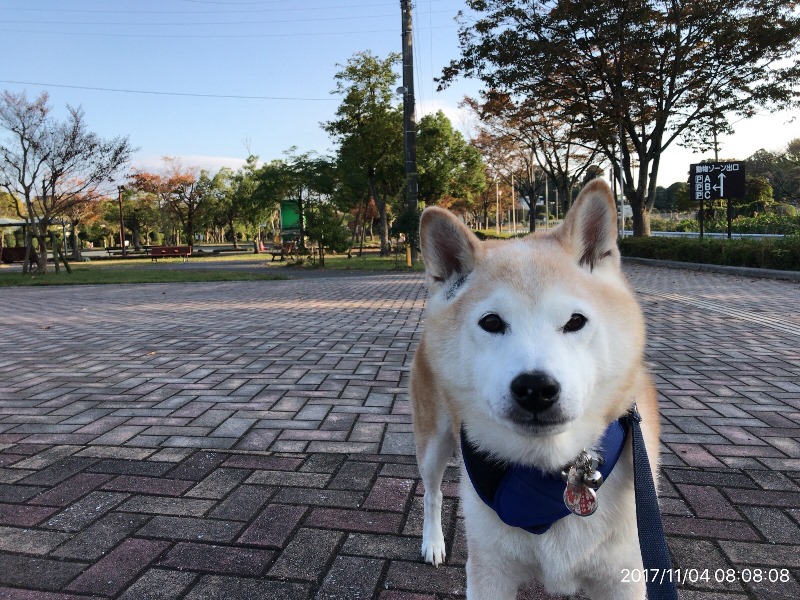 毎日変化・・・お散歩はこうたろうが正門前で・・・ストップemoji