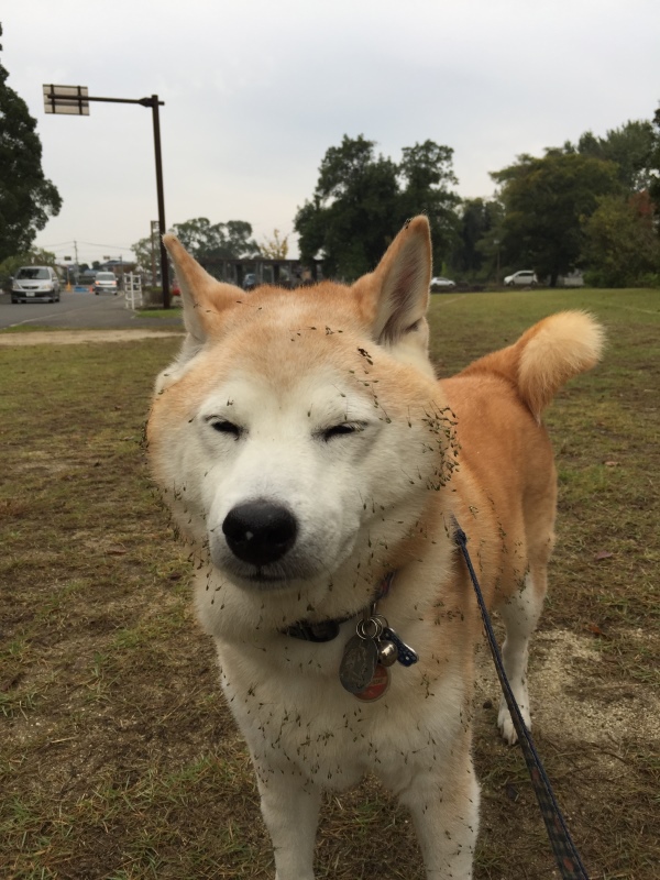 まだいっぱい付いていましたが芝生にスリスリして・・・今のお顔になりましたemoji