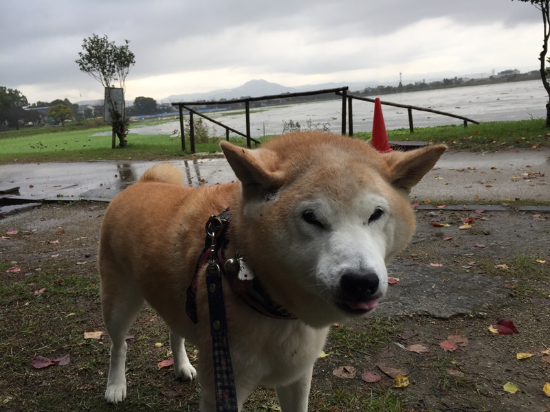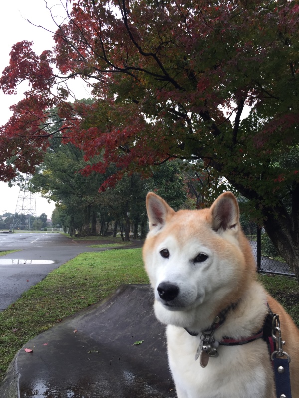 雨が止んでいたので、散歩に出かけましたが・・・こうたろうは濡れるのを嫌がりませんemoji